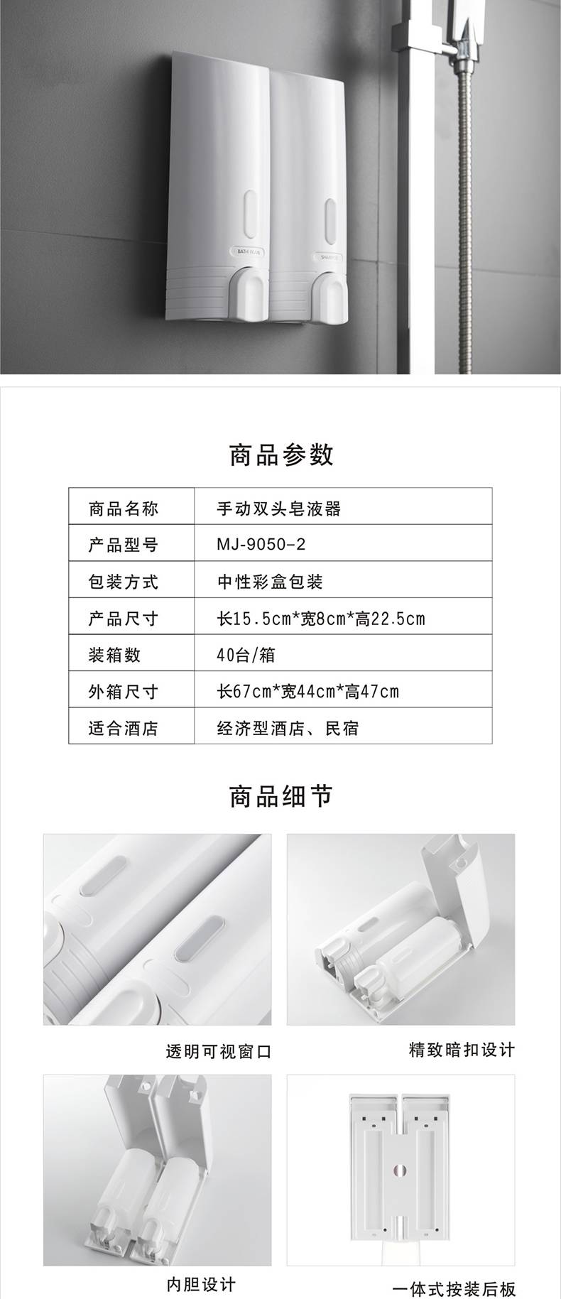 • 380ml Double soap dispenser